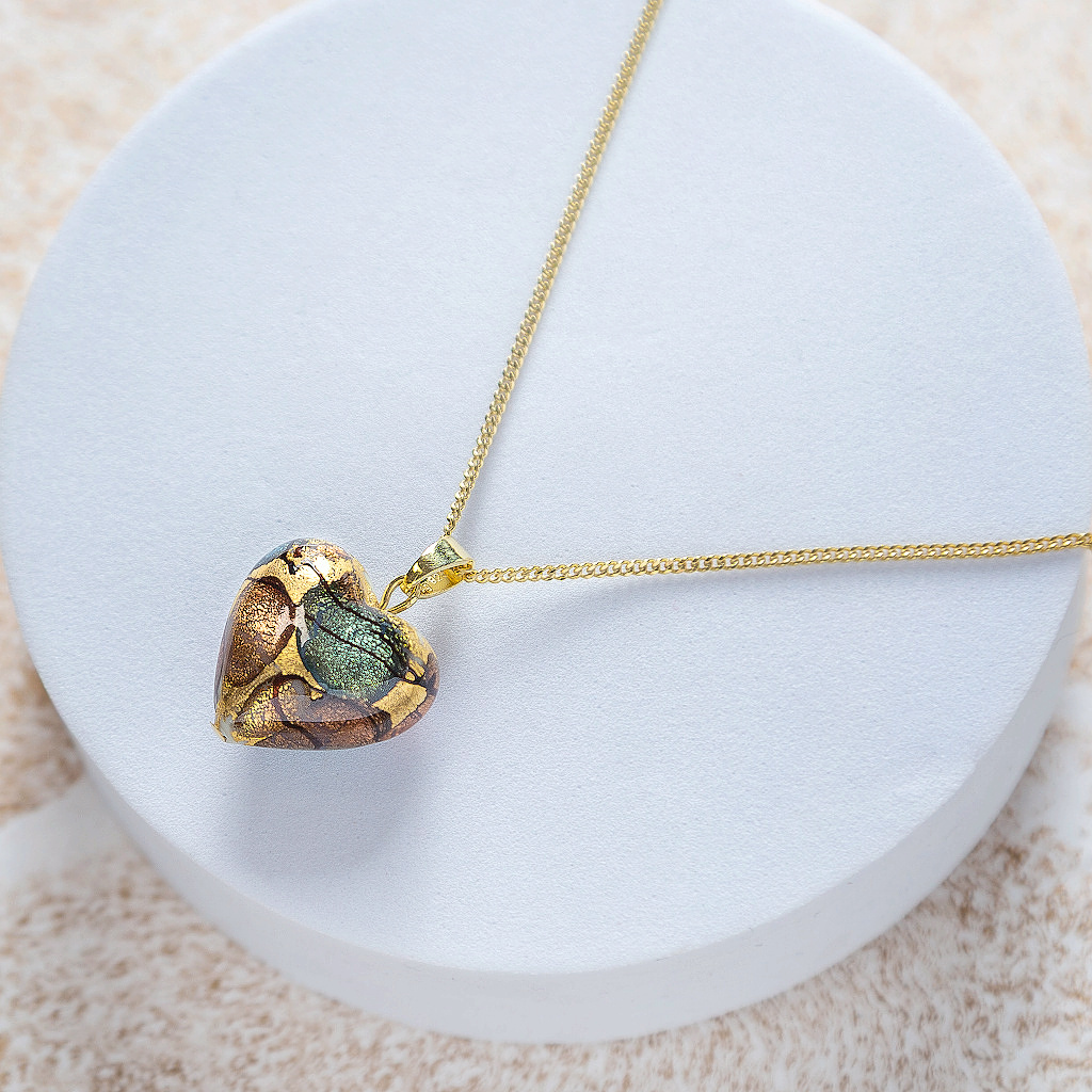 Necklace with a hand-designed Lampglas pearl in the shape of a heart, decorated with 24-carat gold in crystal. A symbol of love, elegance, and Art Nouveau beauty.