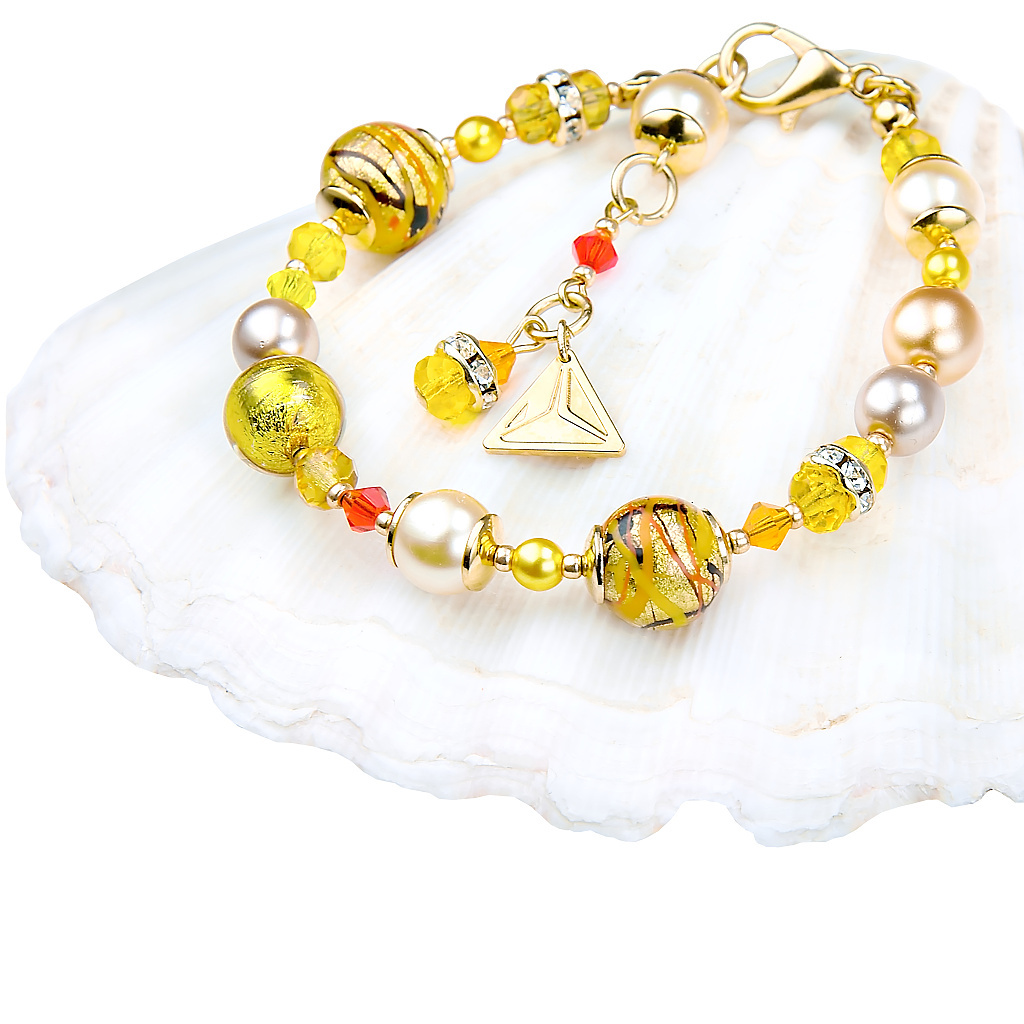 Bracelet Sunny Meadow with 24K gold in Lampglas pearl