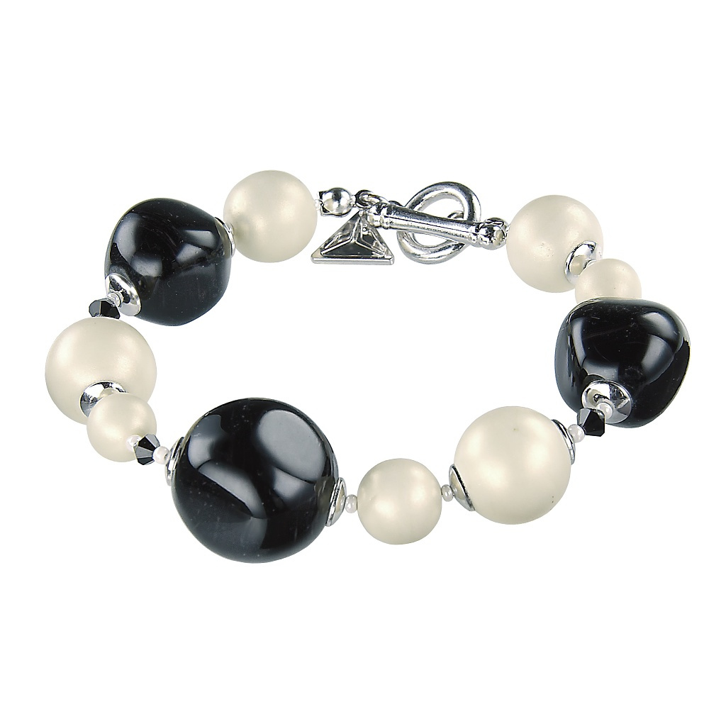 Elegance personified, this is a bracelet with distinctive dark black pearls, interspersed with smaller pearls in a soft cream shade. Put it on your wrist, add a smart suit, cocktail dress or even an evening dress and step out on a journey where you'll never miss the admiration of your surroundings.