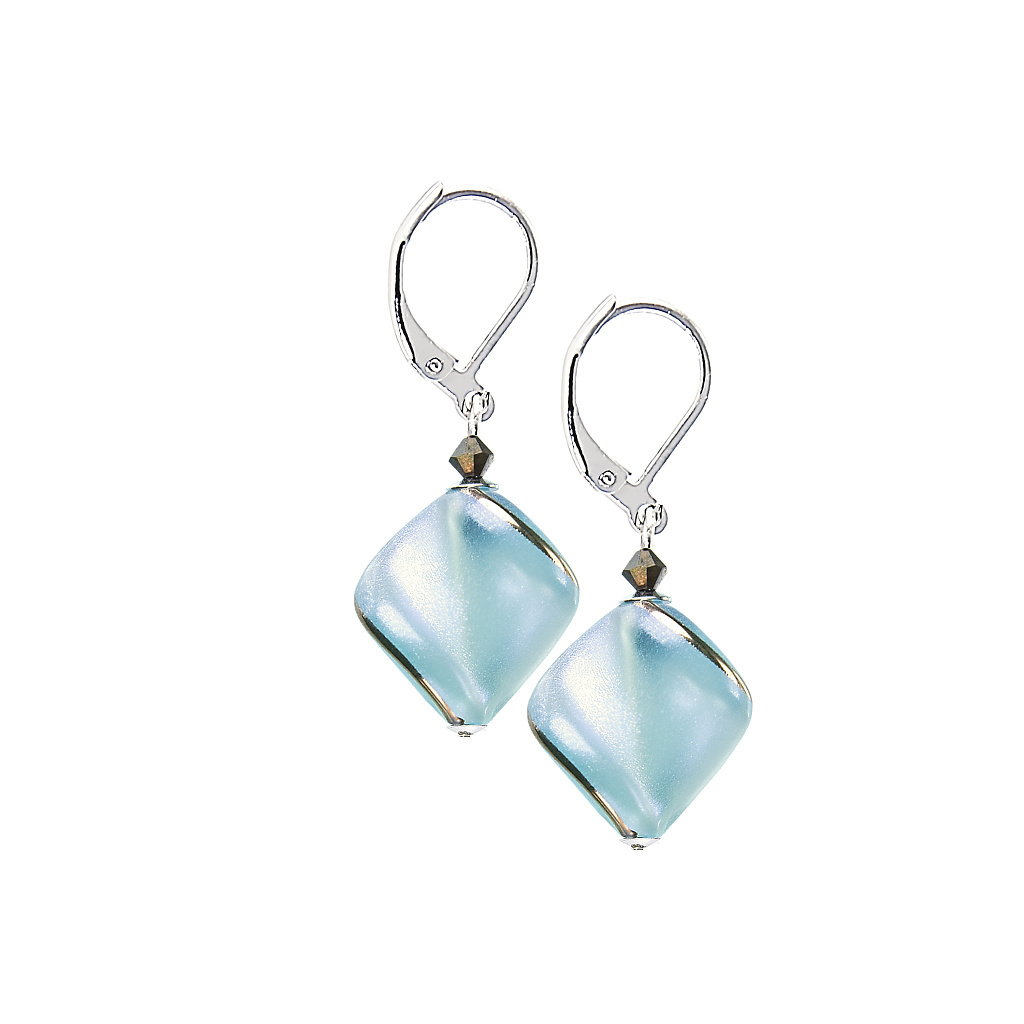 A woman who puts this pair of delicate earrings in her ears feels as if the spring sky itself is swaying in her lobes. The light blue reflects the light beautifully and the fine line with a metallic effect emphasizes the exceptional shape that our designer gave to the piece of Czech glass. Pair it with a work suit or jeans and blouse and get some well-deserved attention.