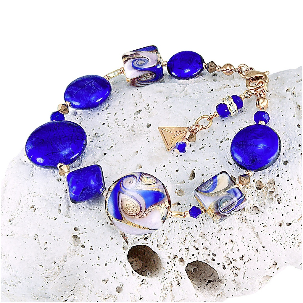 Gold Blue bracelet with 24K gold and sterling silver in Lampglas pearls