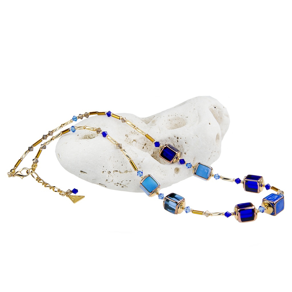Necklace made of Lampglas pearls in the shape of a cube, which we produce using a unique manufacturing process that we have been refining for 30 years. Jewellery for all those who love uniqueness.