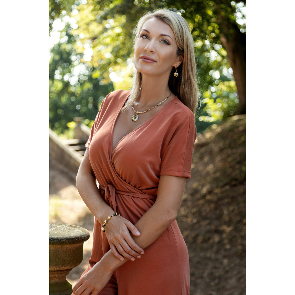 special decoration of Lampglas pearls: | 24K gold with unique hot glass drawing in Czech crystal, designed with hot glass |