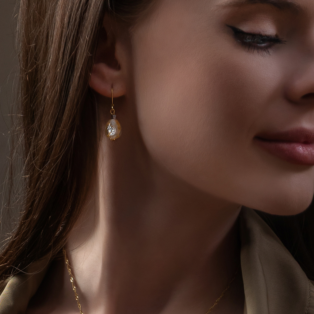 Náušnice Champagne Nude s 24karátovým zlatem a ryzím stříbrem v perle Lampglas