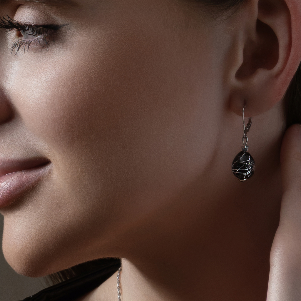 Náušnice Night Nude s ryzím stříbrem v perlách Lampglas