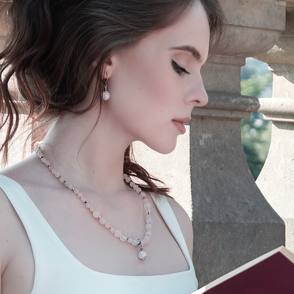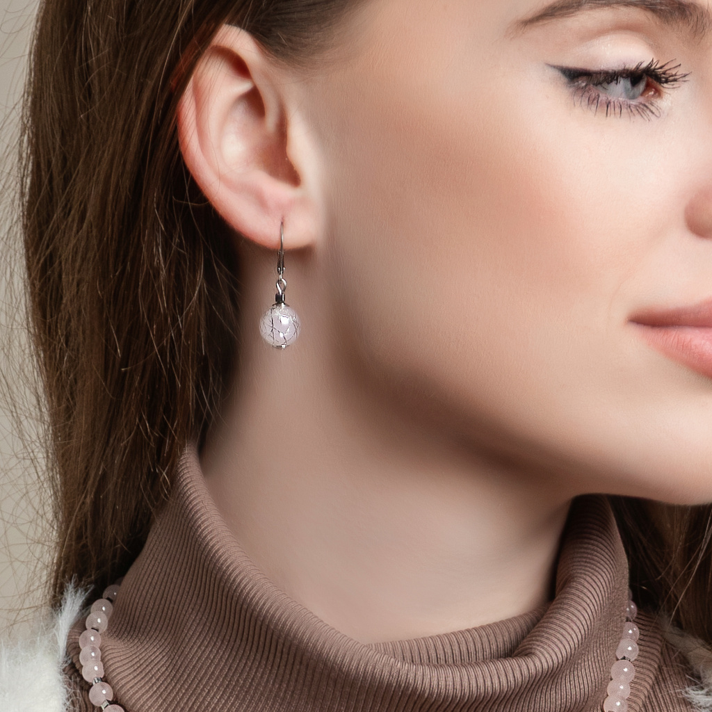 Náušnice Tender Rose s ryzím stříbrem v perlách Lampglas
