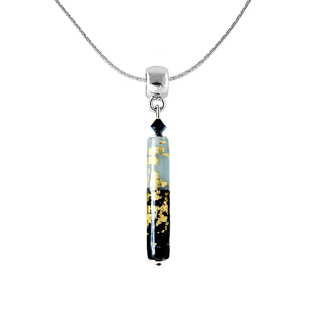 Kind of like Dr. Jekyll and Mr. Hyde, this stunning necklace is one you (and kind of every woman, actually) will fall in love with. Half milky grey, half dark black, the glass cylinder is permeated by slices of pure metal: they come to the surface with a shine, just like the true nature of each of us. Add a simple rhodium-plated chain and you have a piece of jewellery that will complement you perfectly.