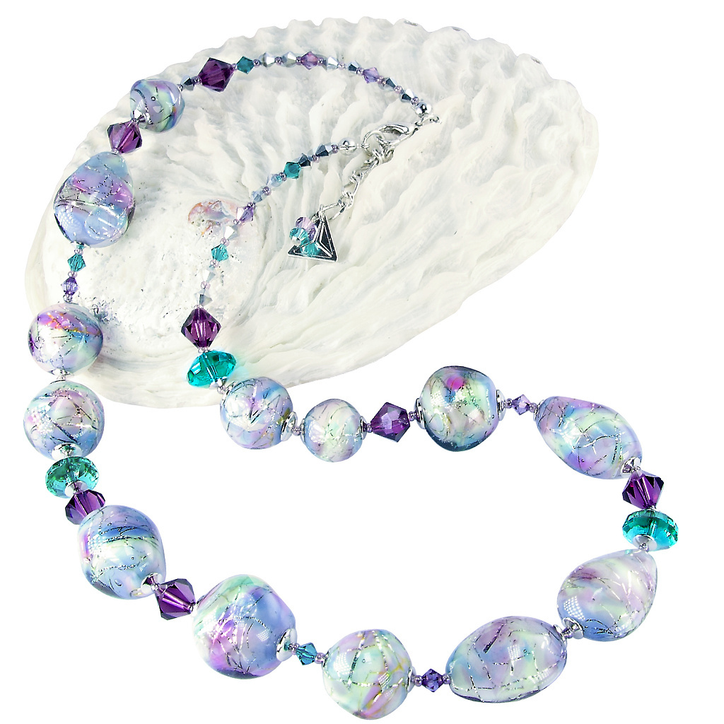 Provence Lady necklace with sterling silver in Lampglas pearls