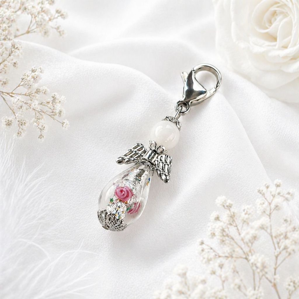 Květinový anděl Lampglas s jadeitem a perlou Lampglas - 2