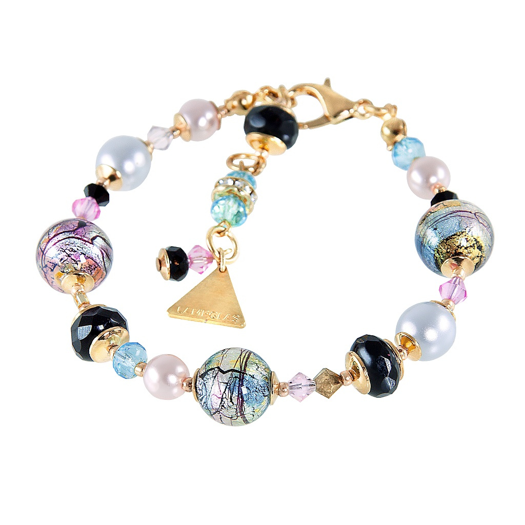 Čarokrásný náramek ze skleněných perel v brilantních odstínech, zdobených drahými kovy, jako pro princeznu.