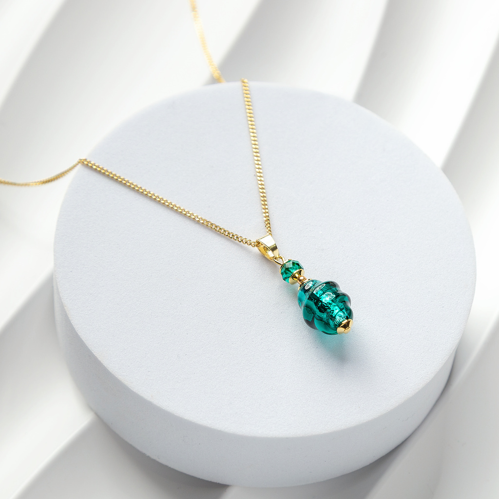 Náhrdelník Emerald Kiss s ryzím stříbrem v perle Lampglas
