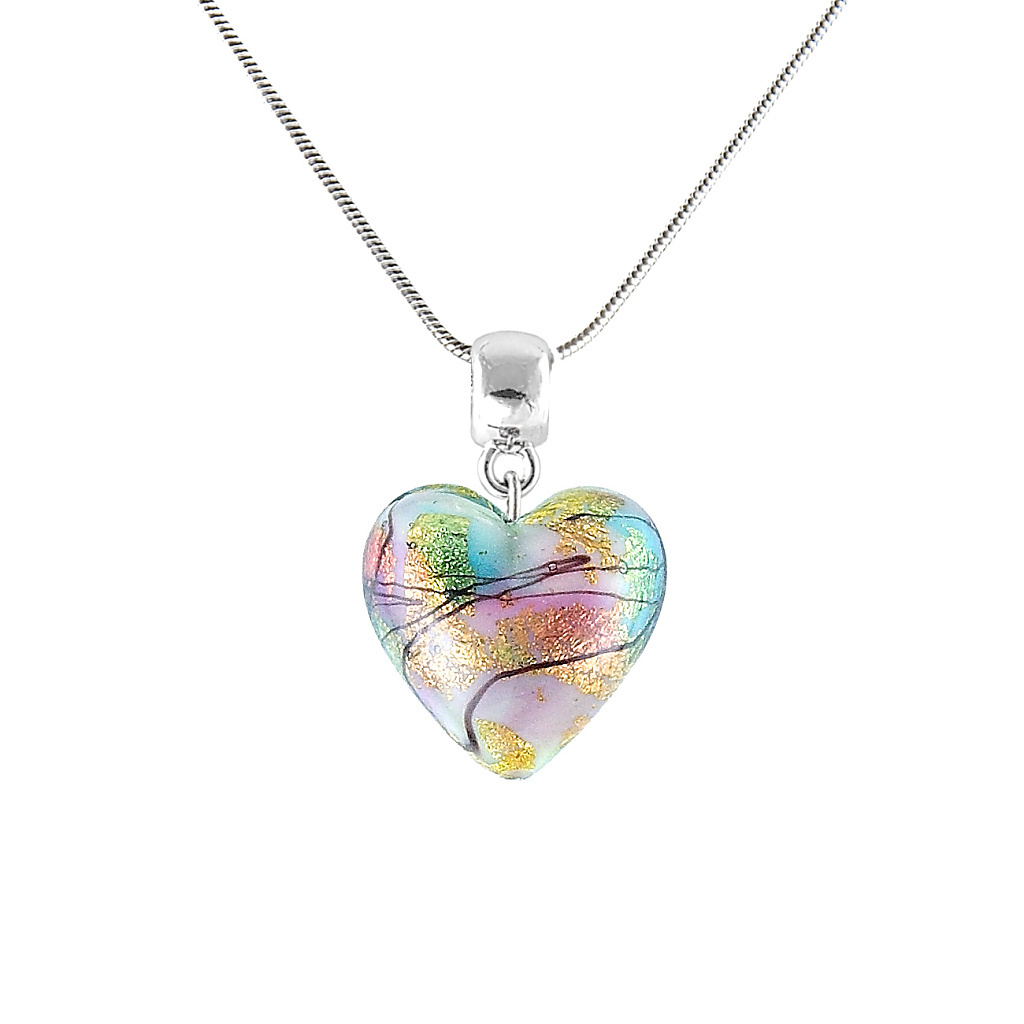 Duhový náhrdelník se skleněným srdcem v pestrých barvách s ryzím zlatem pro radost z každého dne.