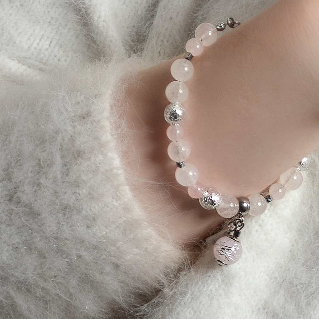Náramek doplňuje také drobný přívěsek, jenž působí jako jemný detail podtrhující jeho osobitost. Tender Rose je šperk, který v sobě spojuje něhu, eleganci a nadčasovou krásu – ideální pro ženy, které milují jemný luxus a harmonii přírodních kamenů.