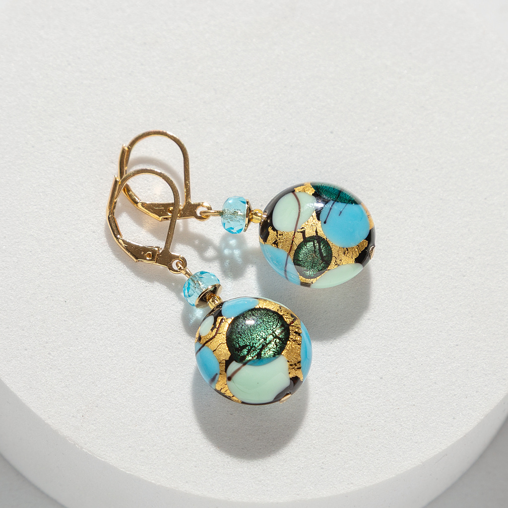 Náušnice Azure Flame s 24karátovým zlatem v perlách Lampglas