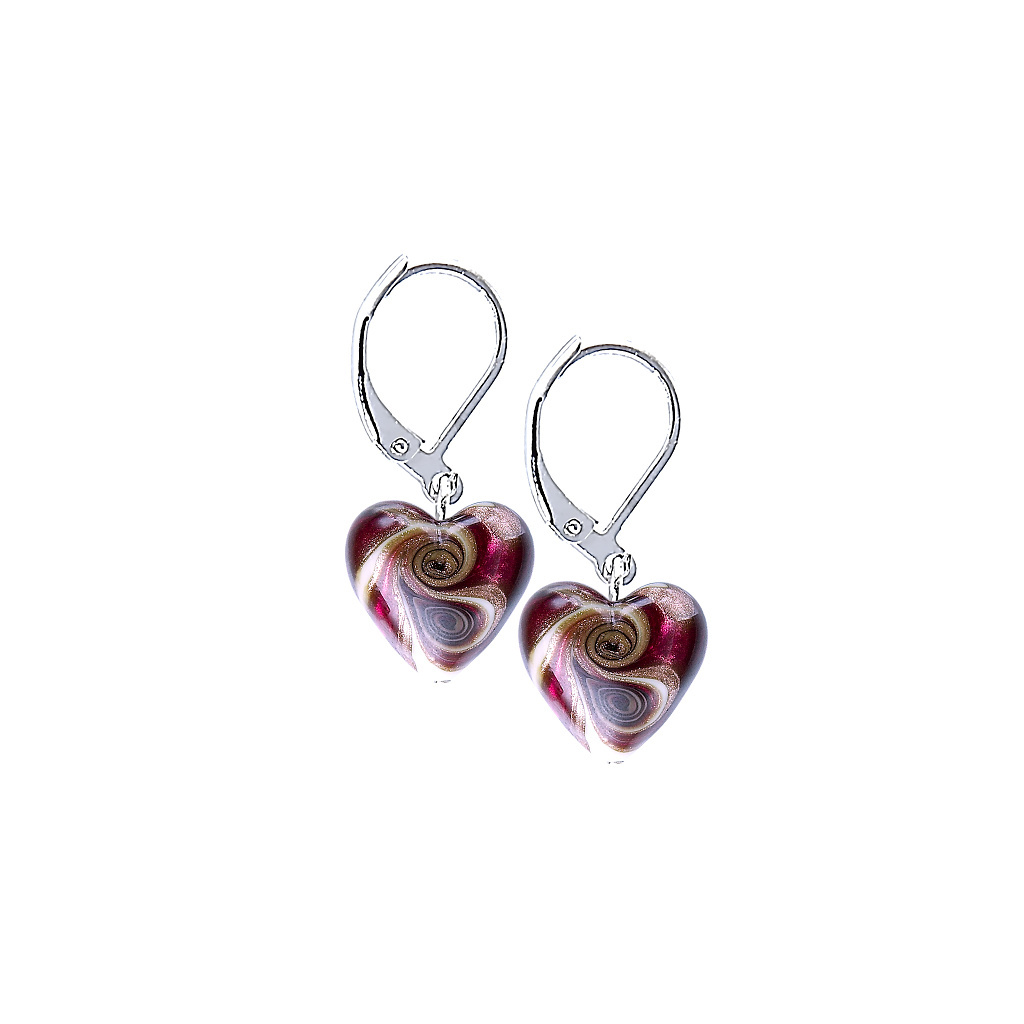 Voňavé lesní maliny zblednou závistí před šperkem, který vynosíte k celé řadě oděvů i příležitostí. Sytá červená s fialovými a růžovými podtóny tvoří základ skleněných srdcí, dozdobených výraznou kresbou horkým sklem a avanturinem. Ženě, jíž se rozhoupou v uších, tak určitě nikdo neodolá.