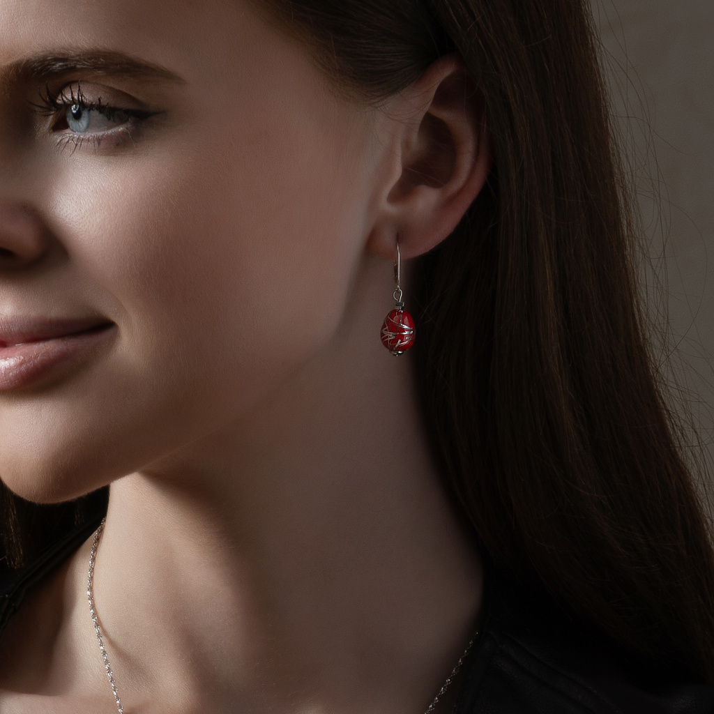 Jemné linky stříbra jako nitky emocí, uzavřené ve smyslně červené perle Lampglas.