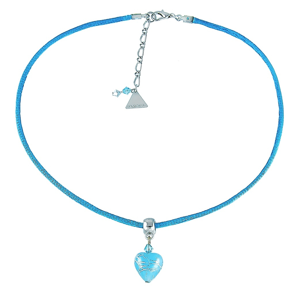 Jako by se vznášela na obláčku. Tak si bude připadat malá slečna, které navléknete na krk tento jemný šperk barvy letního nebe. Světlounce modrým sklem pronikají sluneční paprsky, které se odráží od stříbrných plátků uvnitř vzácné perly. Pevný provázek se přetrhne jen těžko a důmyslný rhodiovaný řetízek pomůže s prodloužením, až dívenka vyroste.