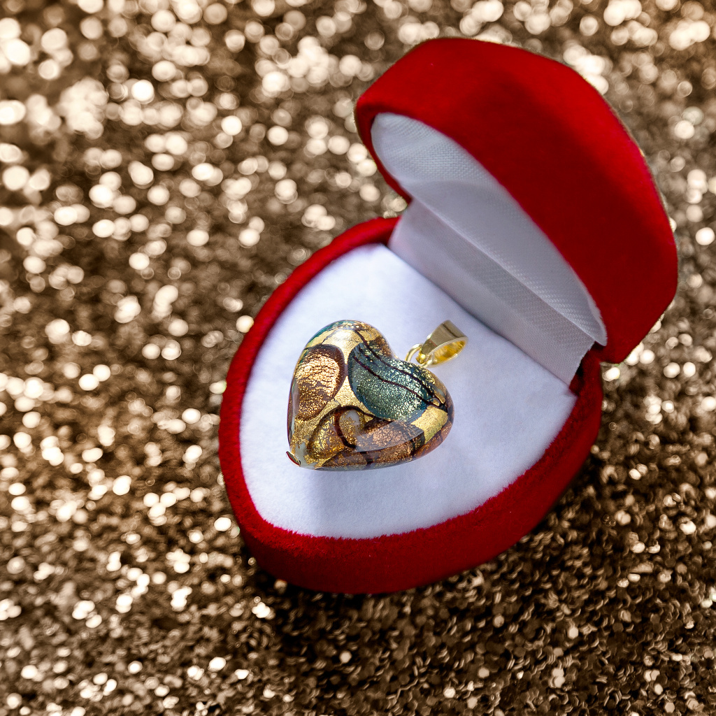 Elegantní přívěsek ve tvaru srdce, zdobený 24karátovým zlatem v perle Lampglas, je ztělesněním vášně a stylu art nouveau.